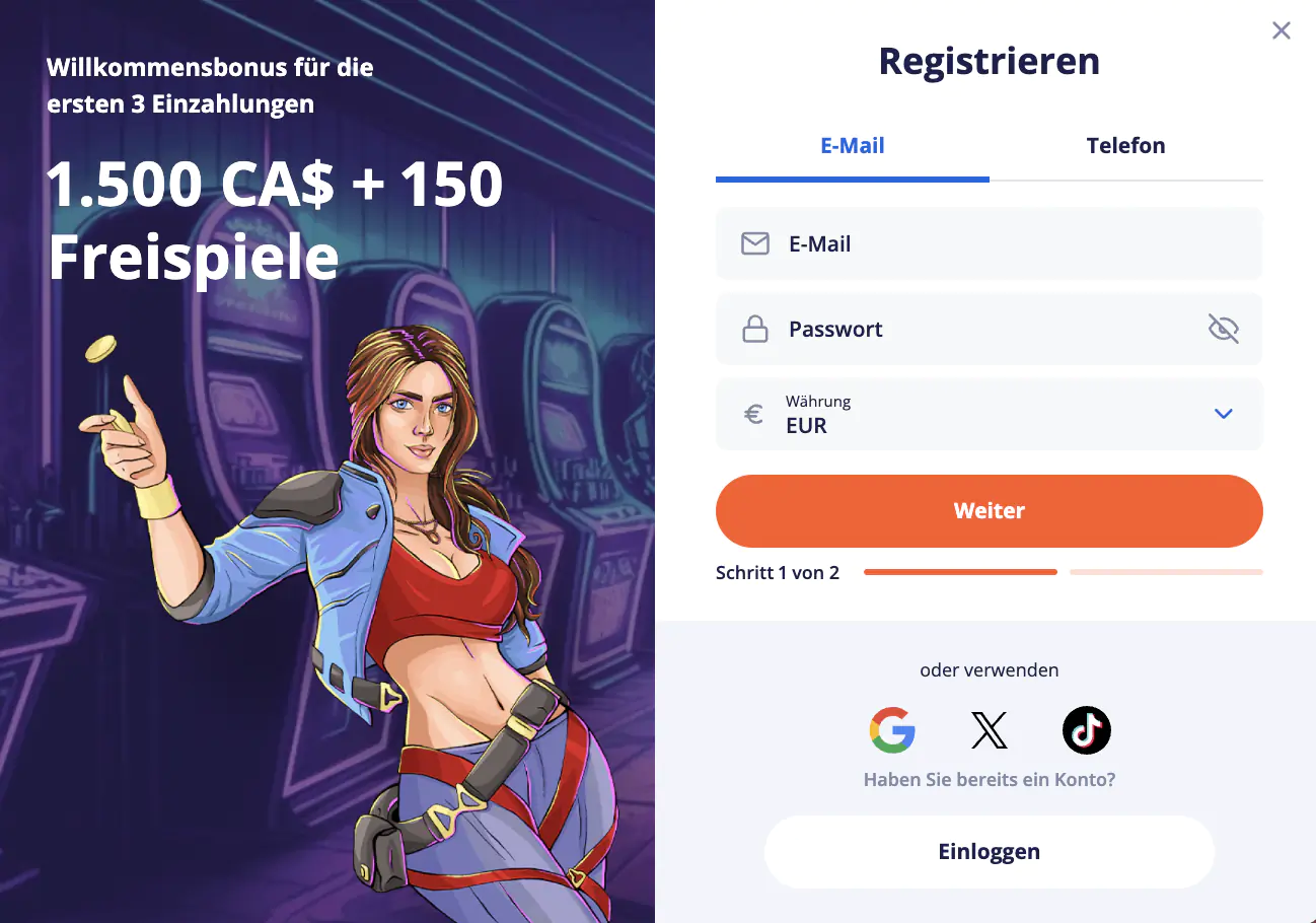 - Melden Sie sich an, tätigen Sie Ihre erste Einzahlung und nutzen Sie Ihren Willkommensbonus!